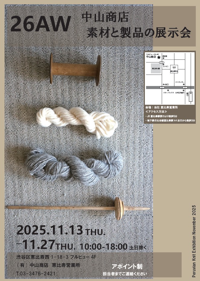 ホーム › インフォメーション一覧 › 「AW26 PERU KNIT展示会」2025年11月13日(木)~11月27日(木)開催