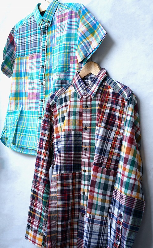 インド在庫のマドラスチェックを使用し、ランダムなパッチワークシャツを作成することが可能です。