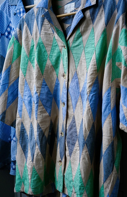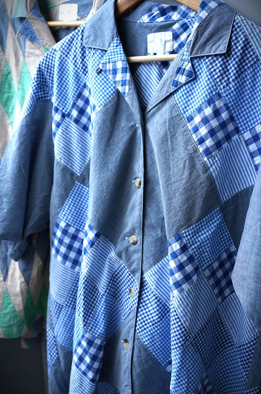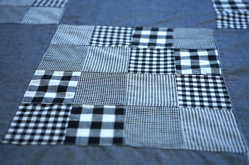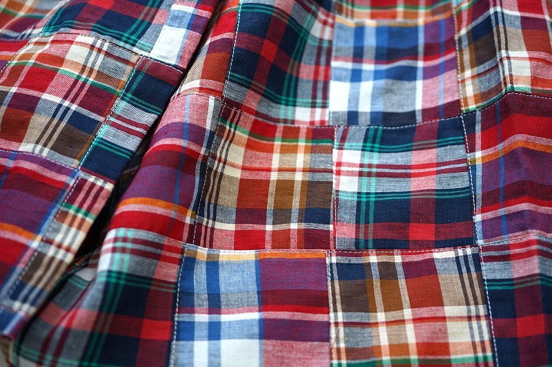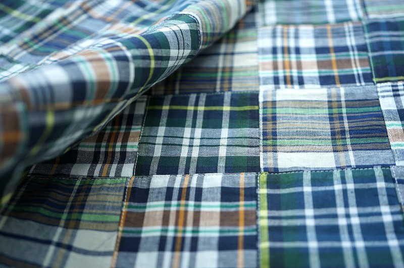 インドに在庫があるチェックやシャンブレー生地をランダムなサイズで組み合わせたパッチワーク生地です。