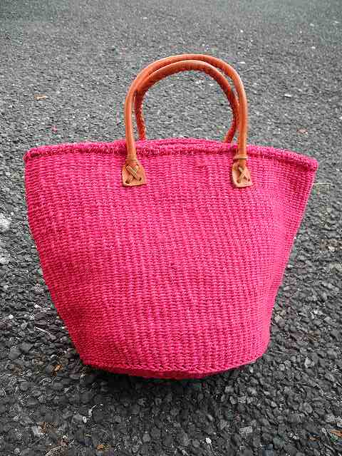 サイザルバッグはケニアに生息するサイザル麻で編まれたバッグです。母から娘へと受け継がれてきた伝統の手仕事で、農作業の合間に作られます。その工程は、原料となるサイザル麻を刈り取り、繊維を取り出して乾燥させ、ものによっては色を付けて編み上げるため、完成するまで2~3週間かかります。繊維を何本か引きそろえて手編みにより完成する為、大きさにバラつきがありますが、丈夫で長持ちするバッグに仕上がっています。
