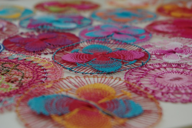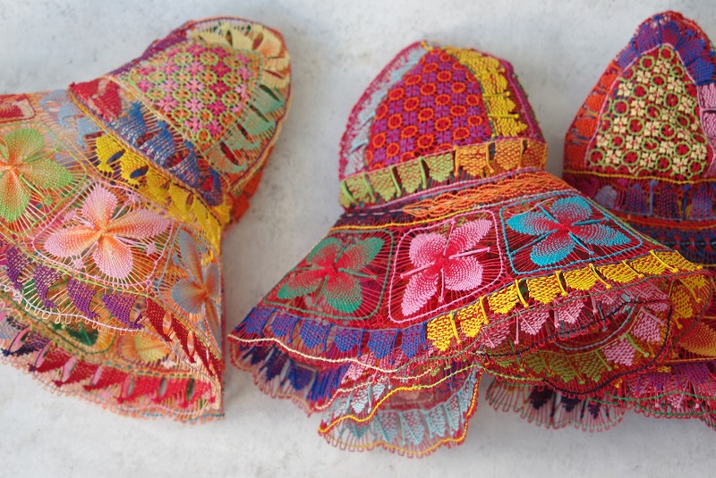 大きさも様々で、ニャンドゥティで仕上げた豪華なドレスは伝統舞踊やハープの演奏には欠かせない服装です。室内ではテーブルクロスとしても使用されています。洋服のアップリケにしても使われており、一つあるだけで華やかになります。