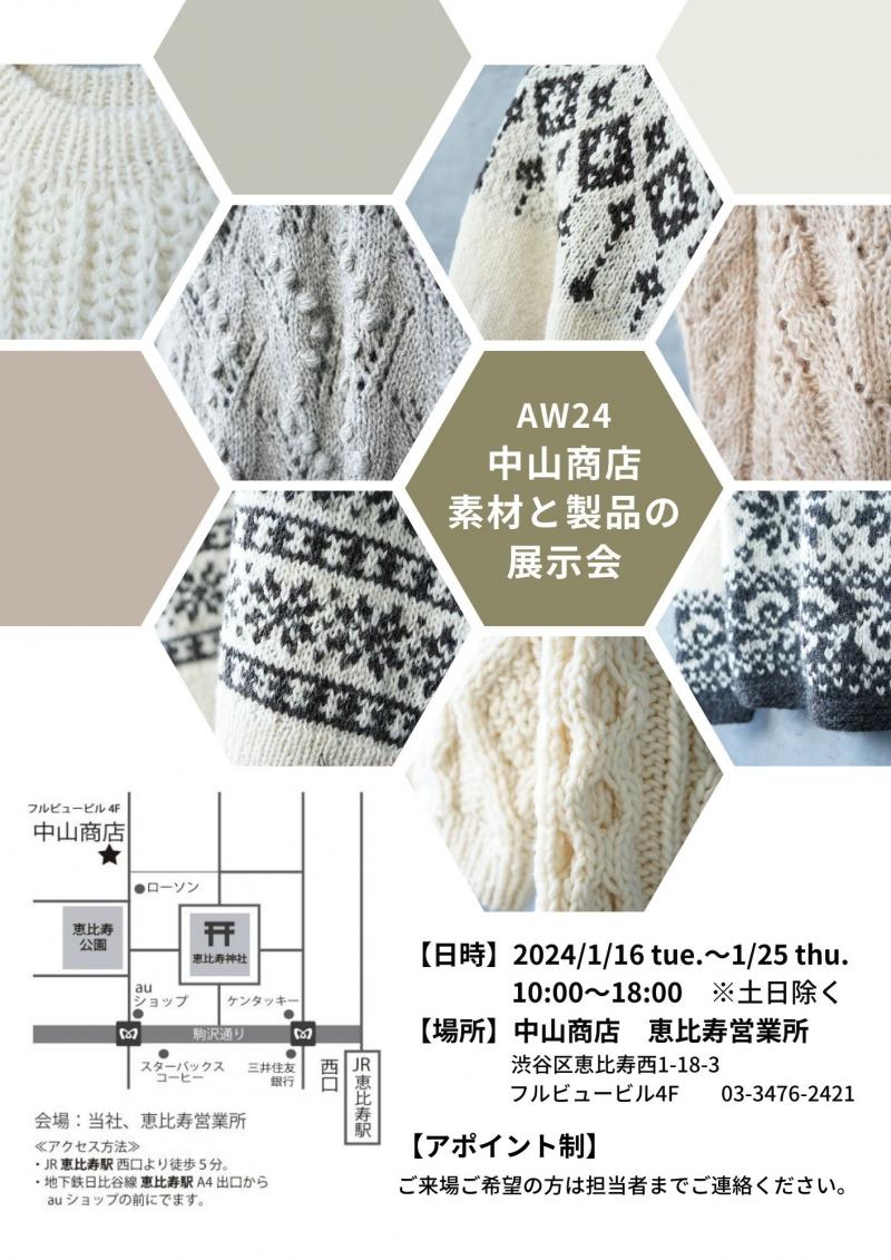 下記日程で、AW24向けペルーニットを中心とした、素材と製品の展示会を開催いたします。